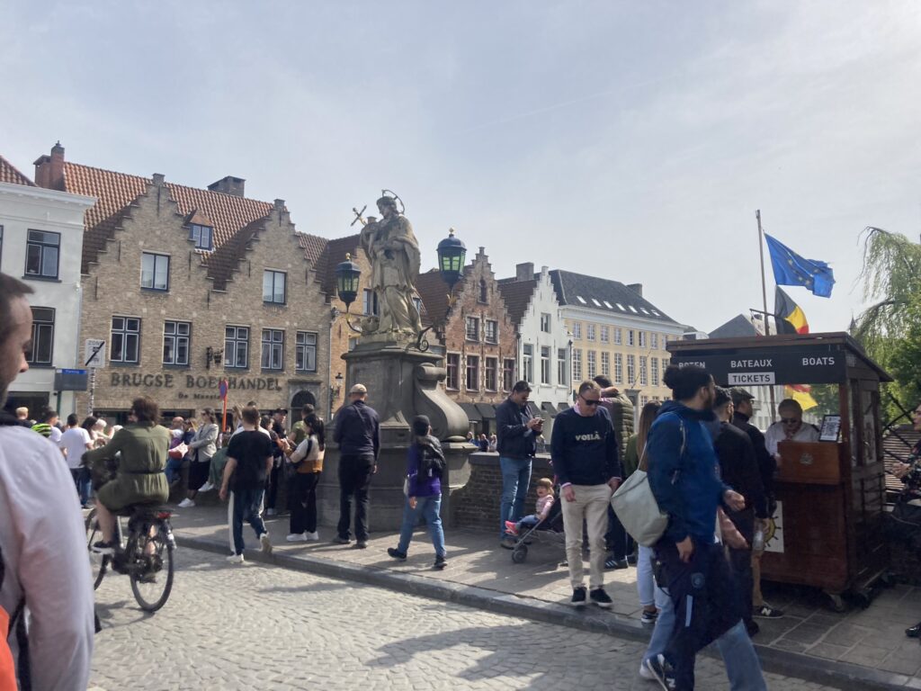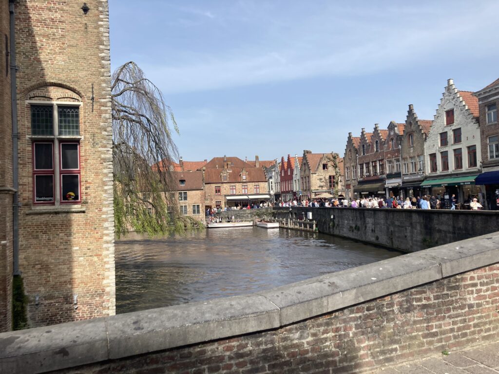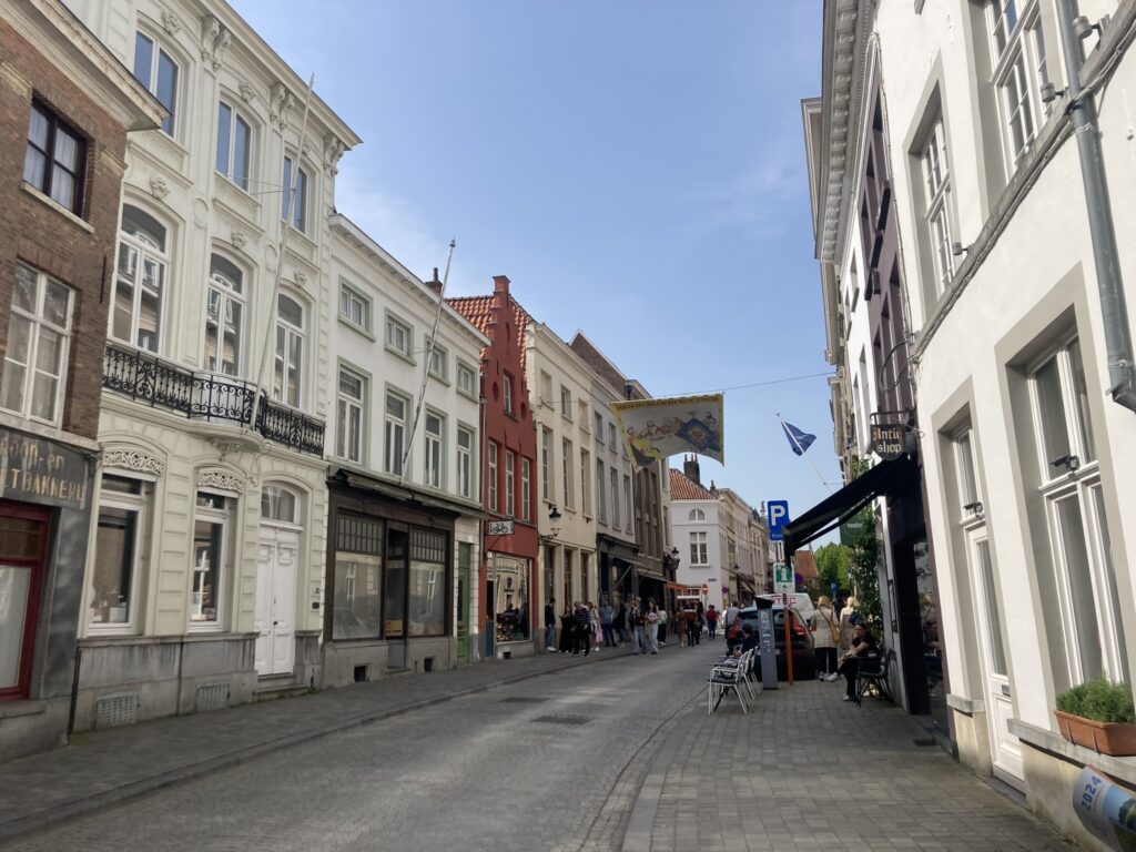 Do wspinaczki trochę czasu było, więc postanowiłyśmy pospacerować sobie po uliczkach Brugii i wzdłuż kanałów. Brugia jest nazywana flamandzką Wenecją, więc trochę tych kanałów jest. To, co mocno czuć w powietrzu, to wszechobecny zapach czekolady i gofrów. Pełno jest też sklepów właśnie z czekoladkami – wszelkiego rodzaju i kształtu. Nie da się nie wyjechać z tego miasta bez jakiejś czekolady czy czekoladki.