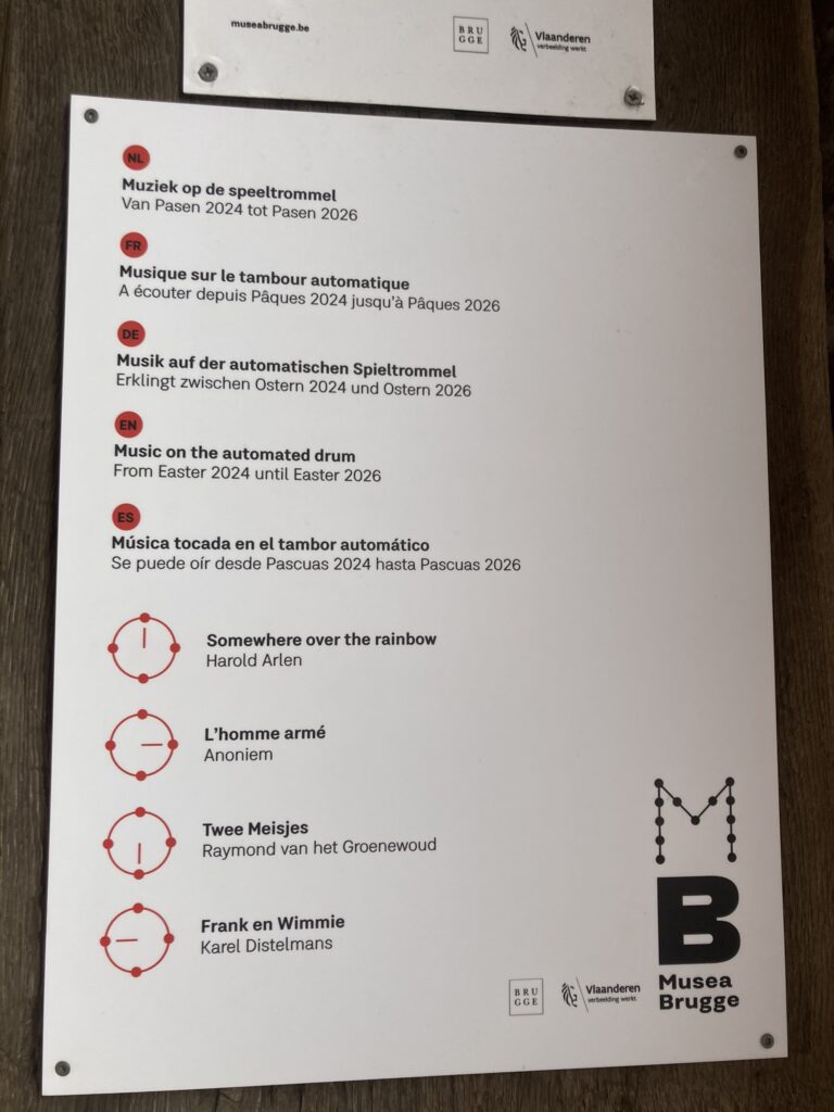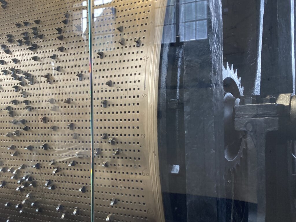 Będąc już prawie na samej górze jest przecudowne miejsce – „drum room” – coś takiego jak katarynka, ale przeogromna! Akurat trafiłam na początek – niesamowicie to wygląda i brzmi! Cała machineria z wieloma dzwonami i dzwoneczkami grające „Somewhere over the rainbow”. Przynajmniej do Wielkanocy w 2026 roku 😉
